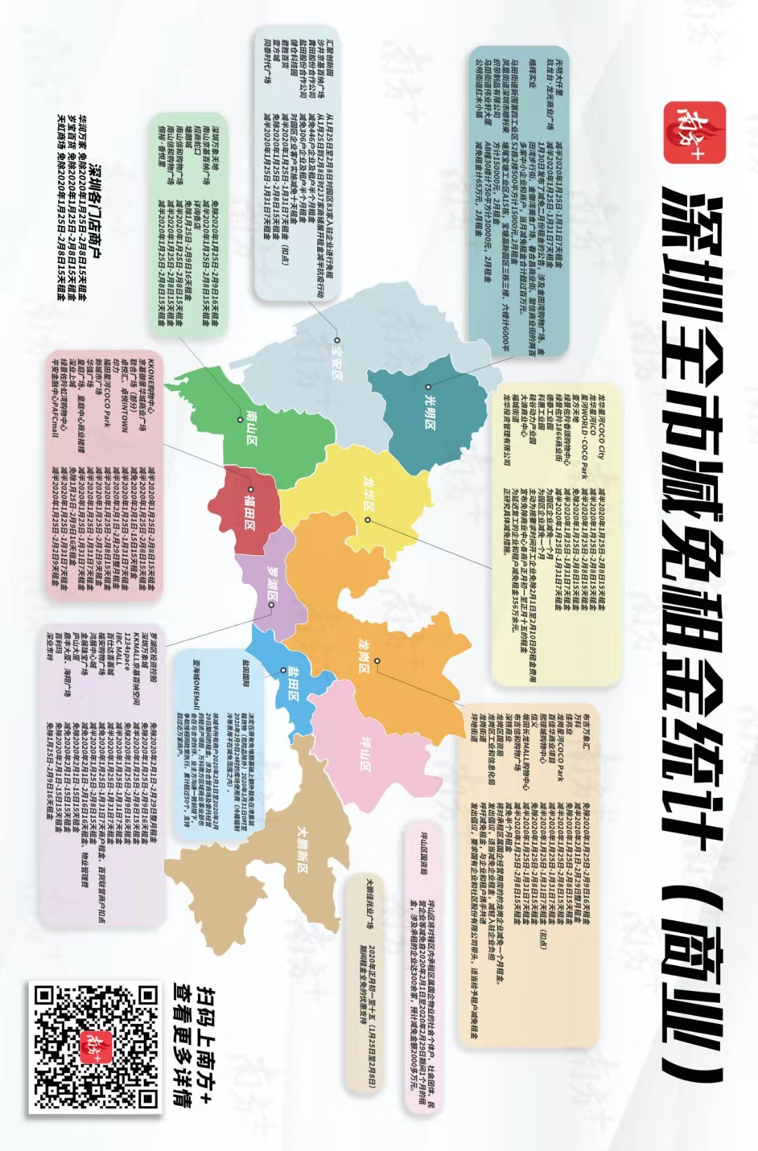 3、鹽田區:對符合條件的商戶減免2、3兩月租金。此次免租政策涉及近40萬平方米經營性物業,惠及租戶230余家,減免租金2000多萬元。