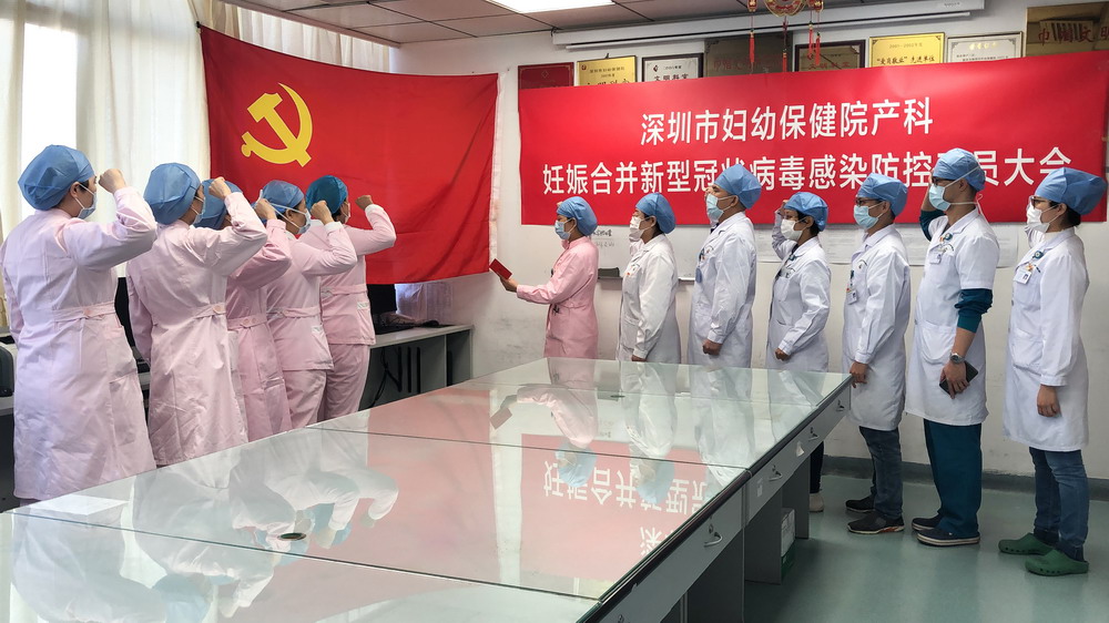 產科自愿參加妊娠合并新冠防控病區的黨員們,在新成立的病區重溫入黨誓詞