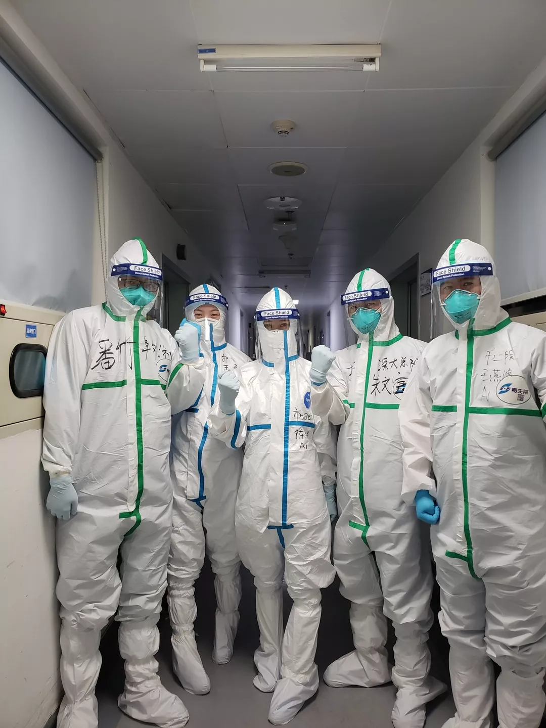 陳浠和其他一線白衣戰士在市三院隔離病房為抗擊疫情加油