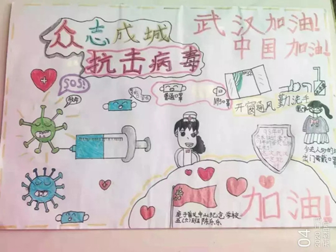 一(1)中隊的張明堯、四(6)中隊的劉晨希等同學(xué)用繪制手抄報的形式詮釋“預(yù)防新型冠狀病毒感染的肺炎,從我做起”。
