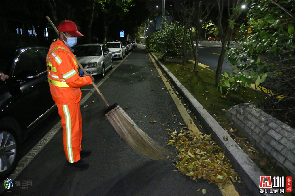 來自湖南的田朝勝,在清潔工人這個崗位已經工作10年,每天清晨他都在清掃著這個片區路面,地面上泛黃的葉子在黑夜里被他掃的沙沙作響。他說,疫情期間,很多環衛人員回老家后再想回深圳就沒那么容易了,有很多老鄉被隔離了回不來。“希望咱們的日子趕快好起來吧,2020年一天比一天過得好。”田朝勝感慨到。