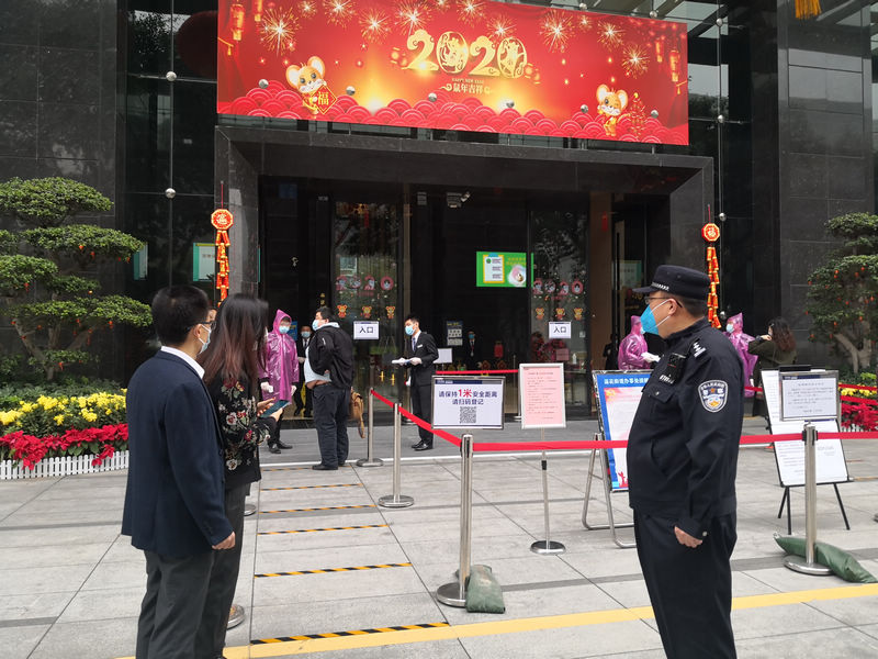 2月10日,蓮花街道福中社區部分樓宇企業今日復工,據統計已復工企業近70家,員工3000余人。目前,所有樓宇大廈均進行封閉式管理,只保留一到二個進出口,鳳凰大廈也通過水馬圍合,實現封閉管理,保留兩個進出口;所有進出員工,均測量體溫,并進行登記,所有停車場入口均有人值守,測體溫并進行登記;各樓宇同時采取了設置臨時隔離區、鞋底消毒、發放應急口罩、加強消毒消殺等措施,全力做好疫情防控。