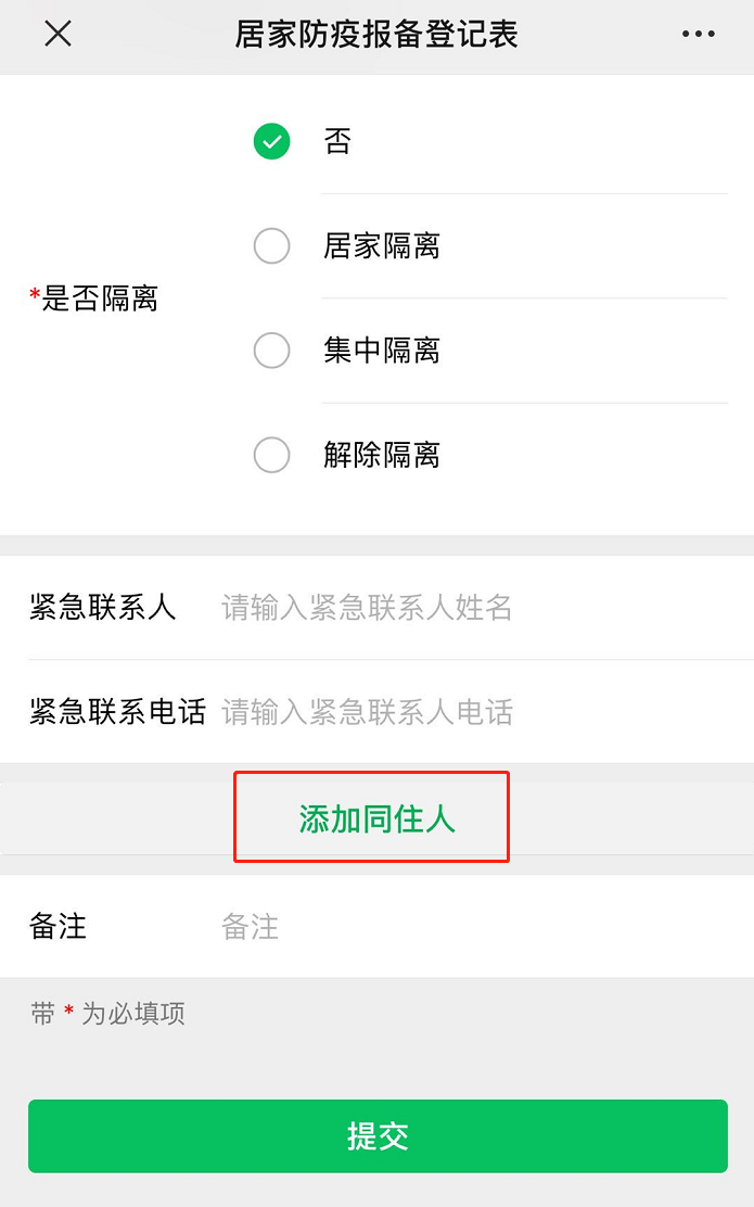 答:隔離情況按所在小區或自家實際隔離情況填寫。