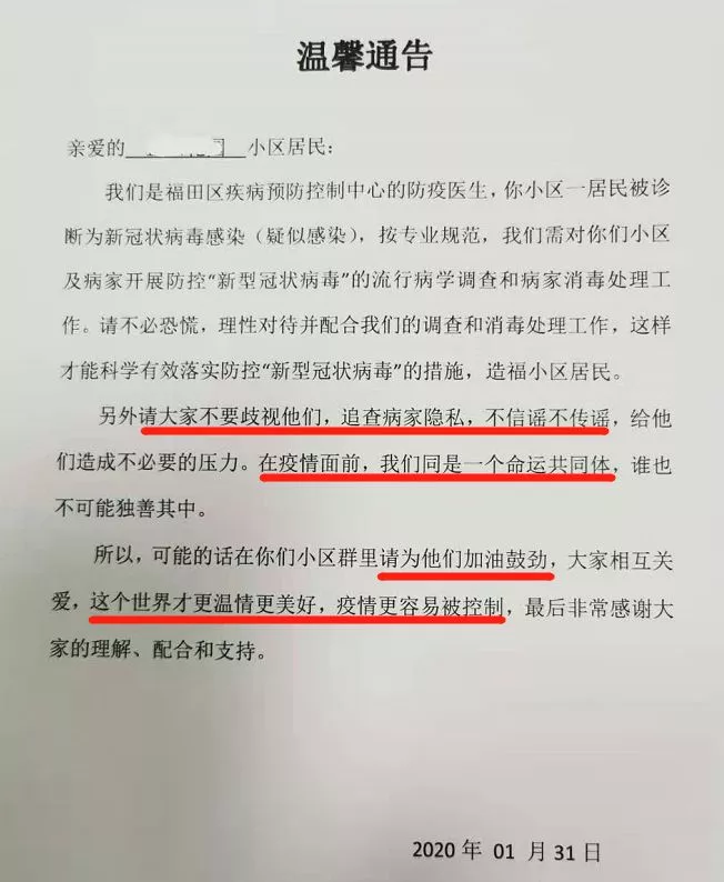 “疫情陰影下,深圳這個小區的通告溫暖了我……”