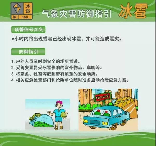 各市縣先后發(fā)布了冰雹橙色預(yù)警,冰雹橙色預(yù)警信號表示6小時內(nèi)將出現(xiàn)或者已經(jīng)出現(xiàn)冰雹,并可能造成雹災(zāi)。