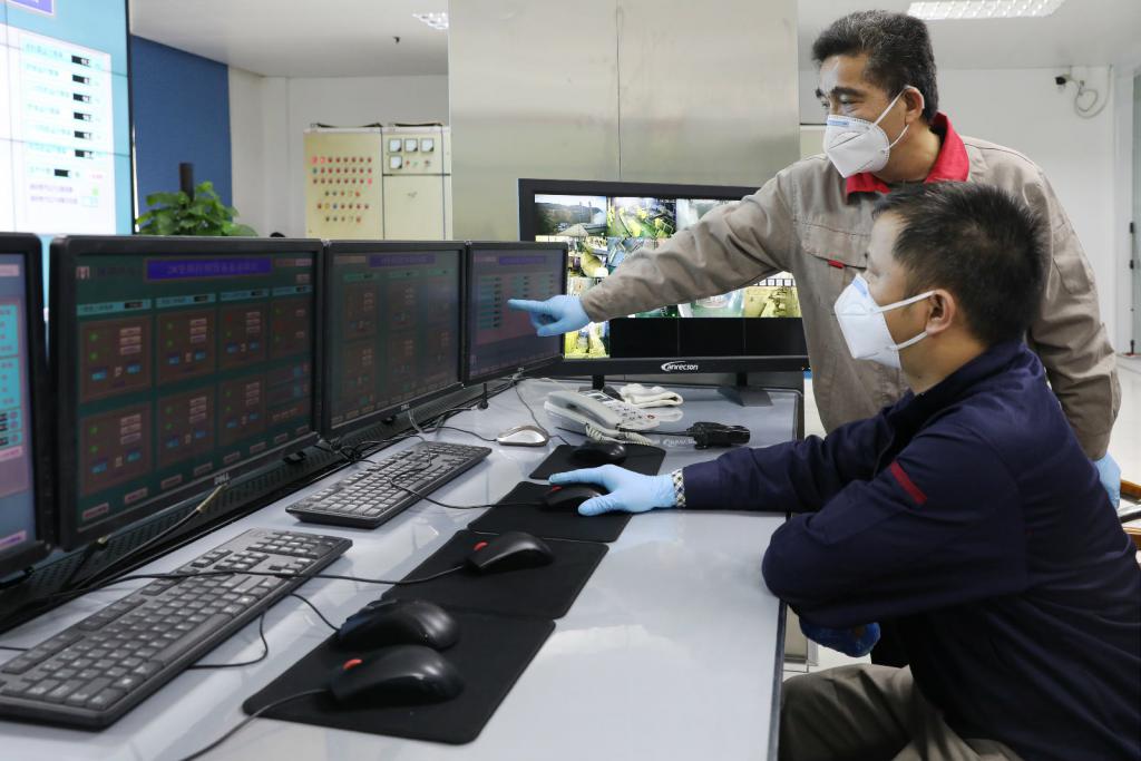 ▲工作人員通過實時影像監測醫療廢物處置過程。