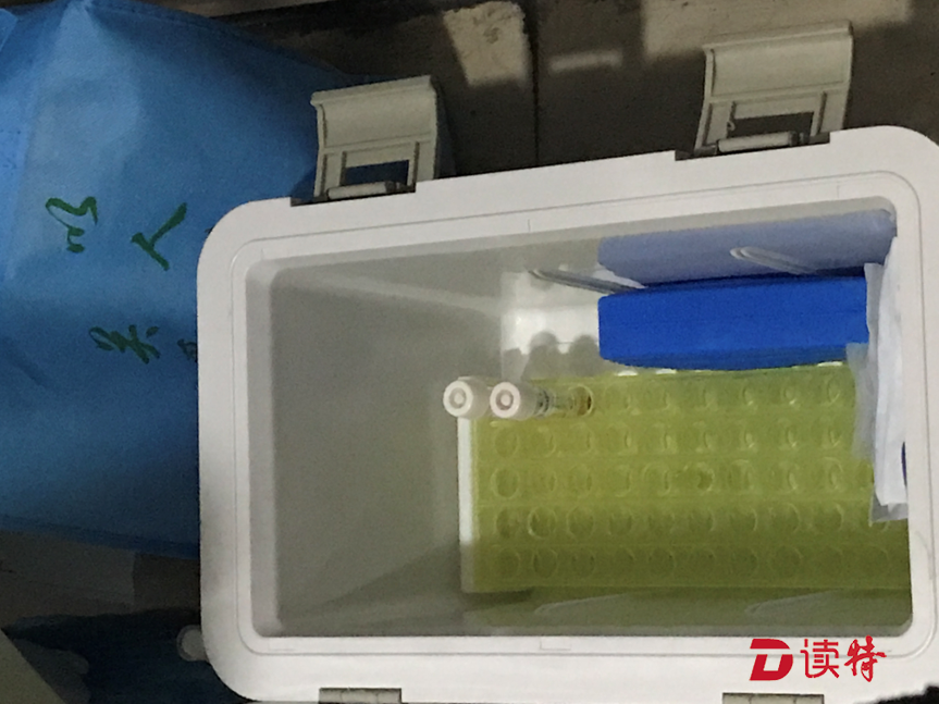 據了解,為了增加采樣的準確性,每個醫學觀察居民均采用咽部和鼻腔分別取樣。醫護人員先用一個咽拭子在孫女士的咽喉內部輕輕擦拭,另一個鼻拭子在鼻道內鼻腭處轉動,然后將拭子放入貼有標簽的樣本管內。完成操作后,三位工作人員更換手套,為孫女士的愛人和孩子完成了采樣,采集的樣品被放入了工作人員隨身攜帶的“送檢專用箱”中。