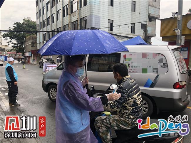 “你好,請留步,麻煩先測下體溫。”在大鵬新區(qū)葵涌辦事處的63個檢測點,身著雨衣的工作人員仍堅守在防疫一線,對來往的行人進行排查。(見圳客戶端、深圳新聞網(wǎng)記者 黎陽 李小輝 通訊員 張莉)
