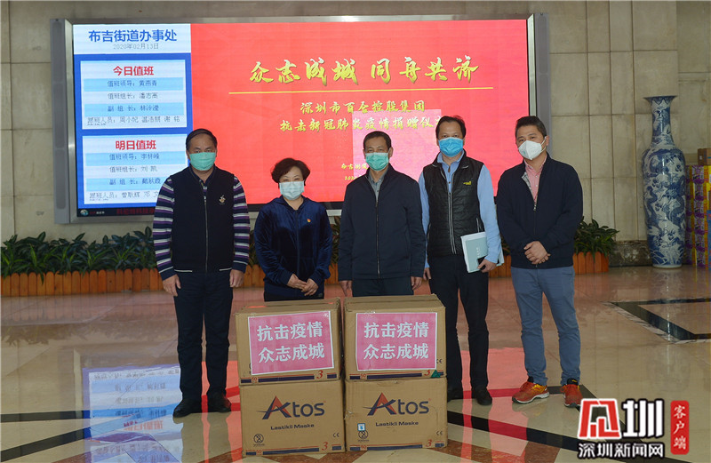 2月14日下午,布吉轄區愛心企業深圳百合集團送來了首批一萬只醫用口罩捐贈物資。