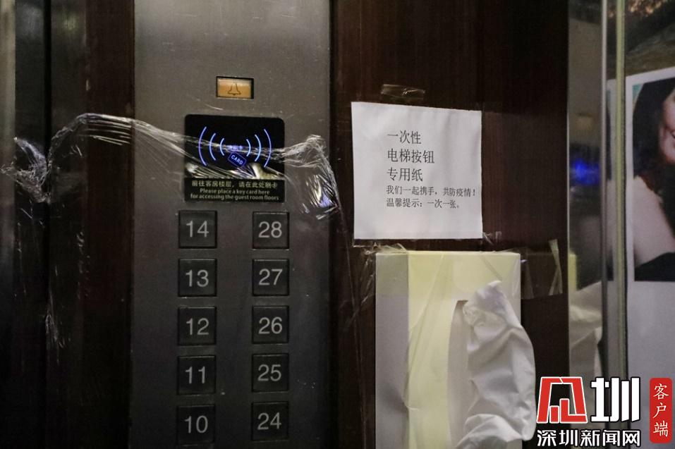日常工作人員和旅客管理方面,酒店加強了人員排查和體溫測試,上下班員工,一旦發現有人有發熱、咳嗽、體溫異常等情況立即作出匯報處理,每天對在住客人上門進行兩次體溫檢測服務。酒店公共場所每兩小時進行至少一次衛生消殺,對電梯按鈕用保鮮膜隔離,安放一次性的電梯按鈕用紙,以防交叉感染。