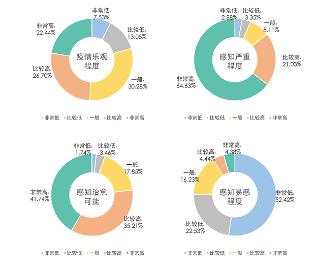 從深圳市民對疫情的感知情況來看,79.42%的受訪者對此次新冠肺炎疫情持積極態度。這種樂觀的態度尤其體現在深圳市民對于疾病易感程度和治愈可能的自我評估上。74.96%的受訪者表示自己感染新冠肺炎的可能性很小,認為自己感染后能夠被治愈的人群占比更是達到了76.95%。一方面,這反映出深圳市民對于政府和醫院的疫情應對措施的充分信任;另一方面,較低的感知易感度卻也暴露出了人們對于感染新冠肺炎可能存在僥幸心理。盡管如此,多數深圳市民還是能夠正確認識此次疫情的嚴重性,認為感染新冠肺炎將會對自身產生嚴重影響的受訪者占比達到了85.66%。