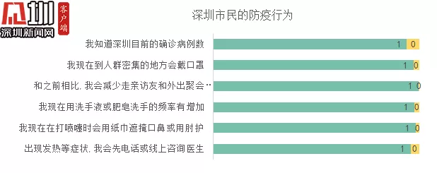 2020年2月9日-11日,深圳疾病預防控制中心聯合深圳大學傳播學院開展了《深圳市民新冠肺炎調查》。在三天時間內共回收到8179份有效答卷。結果顯示,深圳市民對于新冠肺炎知識的了解程度達到了較高水平。近8成受訪市民對疫情發展持積極態度,超9成受訪市民能做好自我防護,對于病原、疾病的典型癥狀、傳染源特征、洗手的有效預防性,以及高危人群特征也均超過了95%。