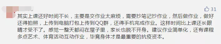 一些參與者留言建議減少或暫停網(wǎng)課時間,縮短周末或暑假時間進(jìn)行補(bǔ)課。