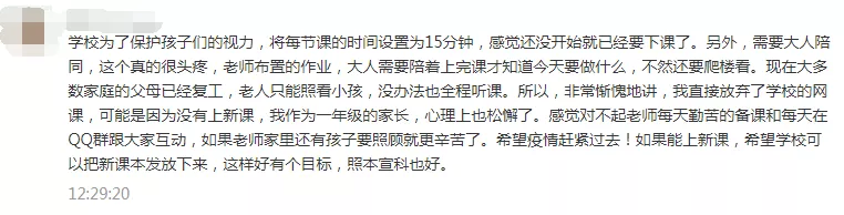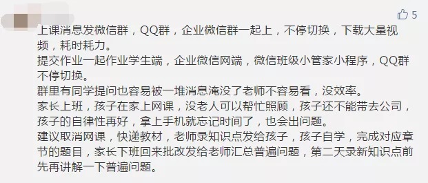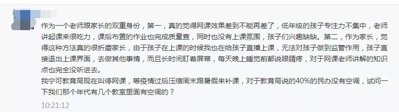 一位小學(xué)老師也直言:線上授課效果太差了,寧愿犧牲周末或暑假時間上課。