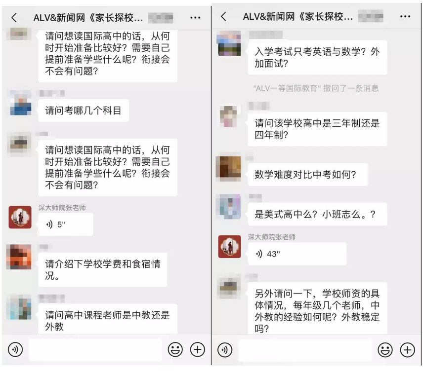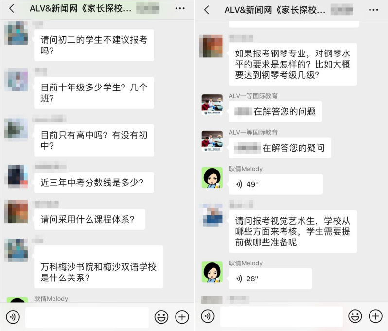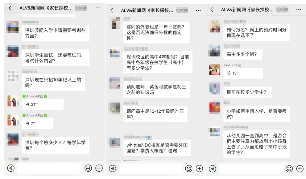 據介紹,在這三場探校活動中,招生官耐心而又細致的逐一為家長答疑解惑,贏得家長對本次活動的高度認可。以下為“家長探校團”微信群內互動截圖: