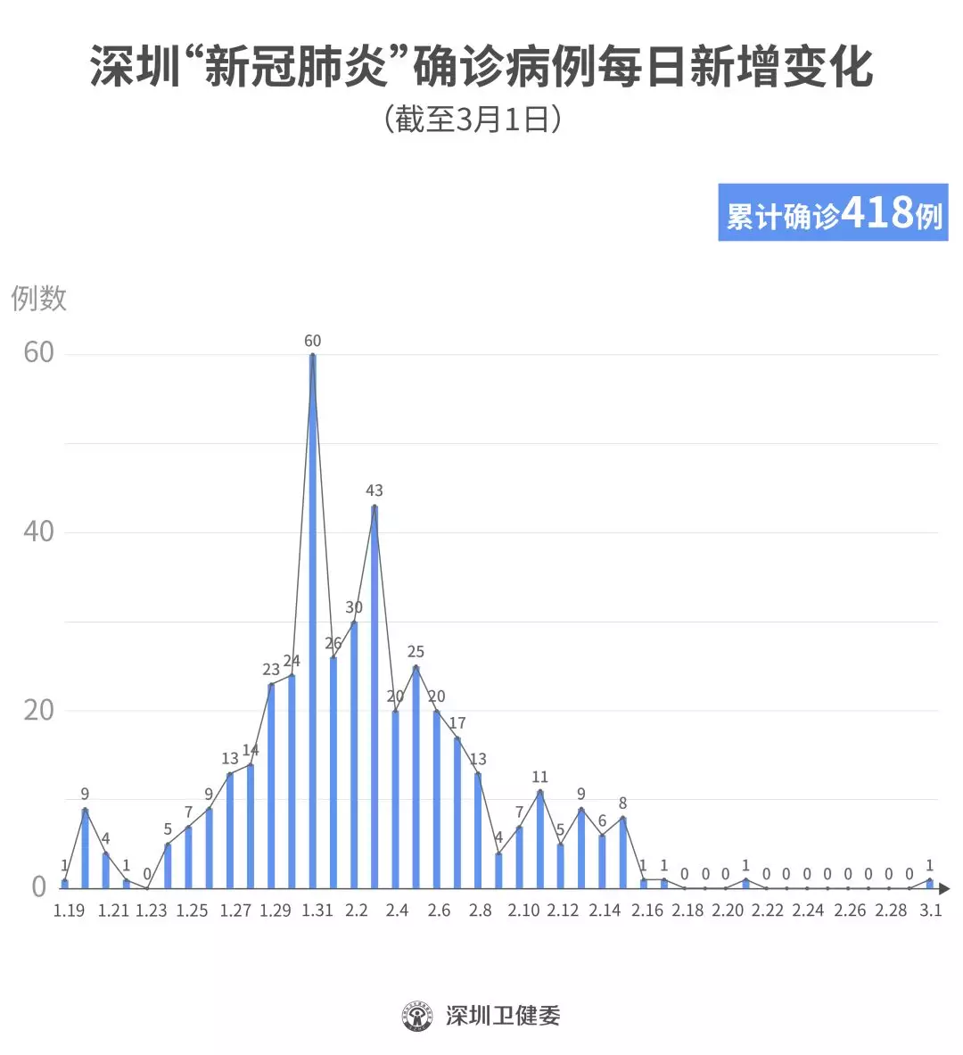 截至3月1日24時,深圳累計報告“新冠肺炎”確診病例418例。3月1日當天全市新增確診病例1例,當天出院病例12例(從2月26日起不再公布出院個案)。 ▲新增出院病例已超過新增確診病例 累計報告確診病例中,男性198例、女性220例。 按照病例管理地區劃分,南山區87例、福田區82例、龍崗區71例、寶安區62例、龍華區34例、羅湖區32例、光明區11例、坪山區7例、鹽田區6例、大鵬新區2例、其他(指由機場、車站、碼頭、關口、路卡等直接送往定點醫院的)24例。 目前,重癥6例、危重癥2例,死亡3例,累計出院320例。 95例確診病例均在深圳市第三人民醫院隔離治療。 103密切接觸者正在接受醫學觀察。 資料來源:深圳市疾控中心、深圳市衛健委、廣東省衛健委