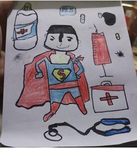 見圳客戶端·深圳新聞網訊(記者 曹文麗 通訊員 王霏 楊睿)有這么一幅畫,中間畫著一位“小超人”,“小超人”周圍畫著聽診器、注射器等醫療器械,充滿童趣,在抗疫期間,這幅畫也給人們正能量。而這幅畫的作者,是一個6歲的孩童。他畫完后認真地說:“這個病毒太壞了,我長大后要當醫生,當超人,要用聽診器、注射器,把這些病毒全殺死!”稚嫩的聲音里充滿了對醫生這個職業的向往,因為他耳濡目染父母工作時的忘我,因為他的父母是一對戰斗在抗疫一線的醫務工作者。