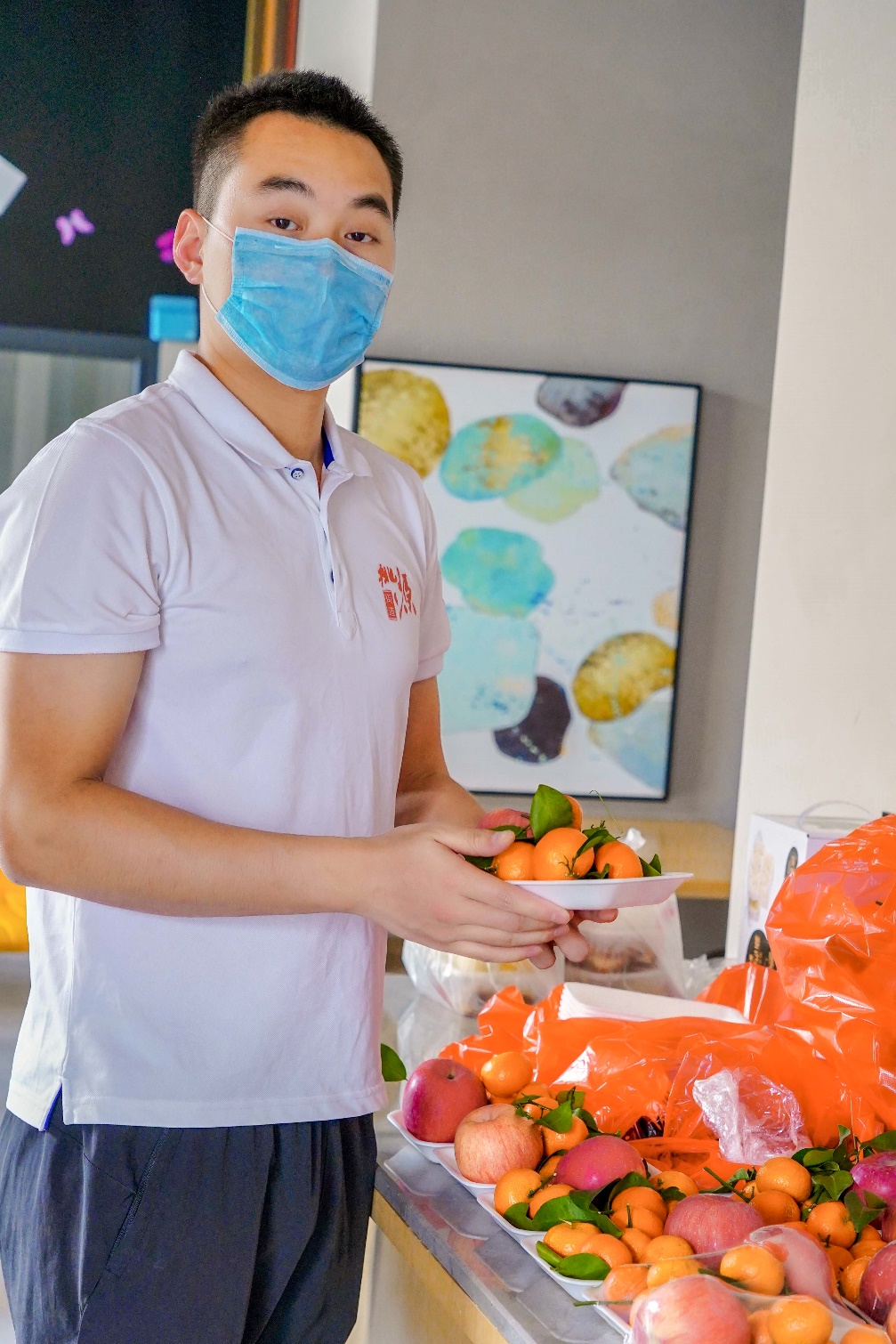 “這里的住客,大多數都是有家屬為確診患者的,隔離期間心理壓力非常大,我們一定要多關心他們,保障好他們的生活”楊超林說。為此,他努力協調酒店安排豐盛的三餐,還配備了補充維C增強免疫力的水果、牛奶加餐,保證密切接觸者的營養供給增強抵抗力。酒店的標準配置并不能滿足大家的個性生活需求,細心的楊超林每日回訪時都會記下客人的要求,及時采購了一批洗衣液、洗漱品、蚊香液、手機充電線等生活物資,盡最大努力打造一個溫馨、有人情味的觀察點。