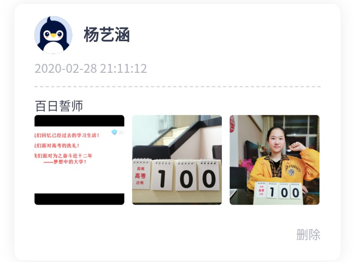 “光陰似箭,日月如梭,一晃眼,高中三年馬上就結(jié)束了,現(xiàn)在還有最后100天,我們就將面臨人生的第一道大關(guān)——高考!高中三年堅(jiān)持為此,高中三年拼搏為此,最后的100天,努力復(fù)習(xí),祝自己也祝大家,高考順利!”高三(16)班的陳國(guó)松在班級(jí)群里給大家送出了祝福。