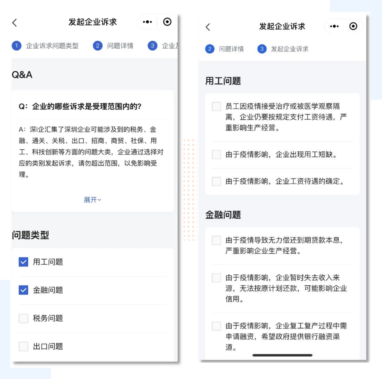 “希望企業(yè)能夠有個更好、更方便的渠道提交訴求,政府部門能夠更快、更高效的回復企業(yè),實現(xiàn)企業(yè)有訴、我必有應。”深圳市中小企業(yè)服務局副局長呂哲表示,平臺的建立是為了給深圳的企業(yè)提供更精準、更便捷的服務。下一步,還將依托平臺對各企業(yè)提交的訴求進行數(shù)據(jù)分析匯總,對于企業(yè)共性問題盡快通過出臺政策的方式解決,對于個性問題努力按照“一企一策”的方式解決,加快幫助企業(yè)度過難關(guān)。