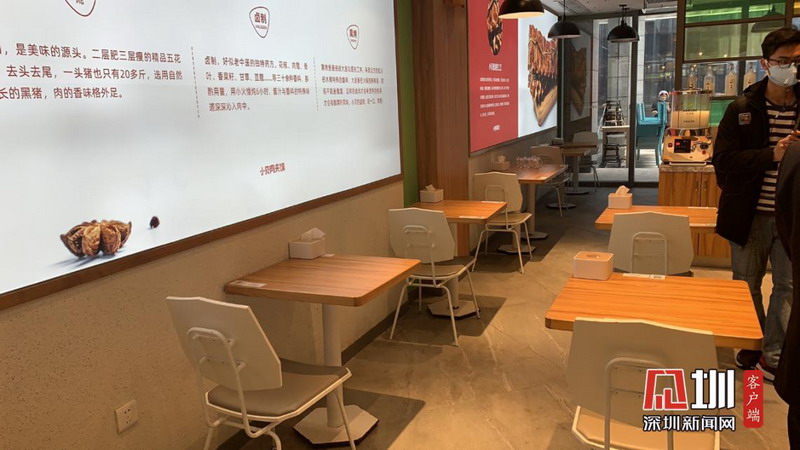 在第二家小貝,記者發現他們在門口和桌面都會貼上讓顧客佩戴口罩和測量體溫的溫馨提醒,并且鼓勵顧客盡量打包,減少堂食。小貝家的桌椅擺放也是一人一桌,并且座位朝向同一個方向,保持一定的安全距離。目前,他們每天有200多單點餐,基本恢復到疫情之前50%的水平。