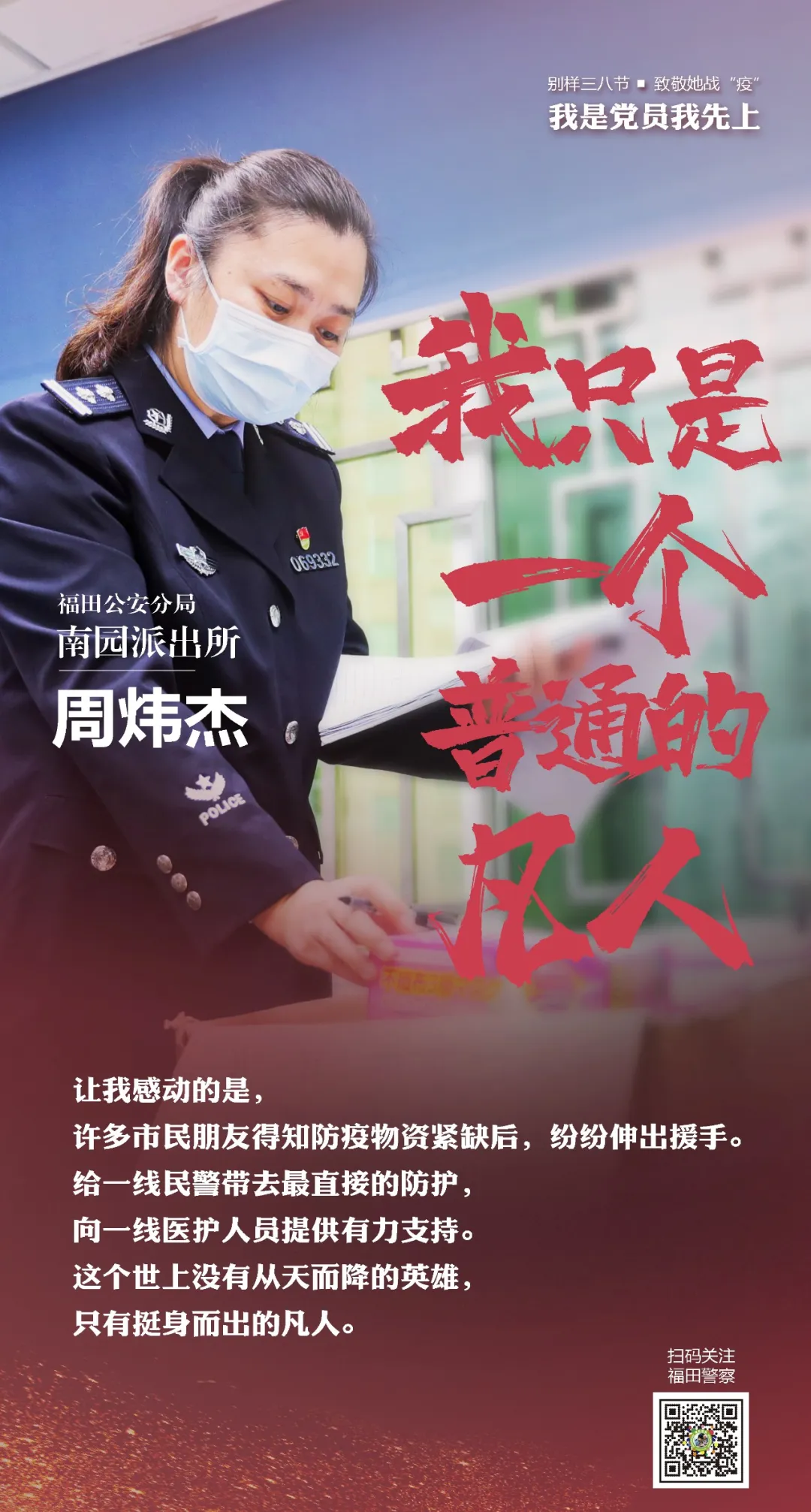 在“三八”國際勞動婦女節來臨之際,讓我們走進福田警營,聽聽這些“最美逆行者”的戰疫故事。