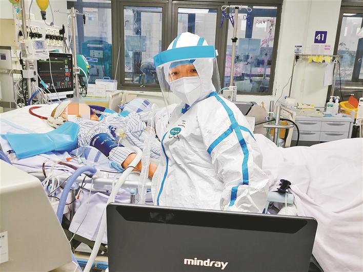 疫情早期,形勢嚴峻,隨著確診病人一批批收治,重癥病房很快進入超負荷狀態(tài)。“最高峰的時候,我們接診了40多名患者,整個ICU病房都住滿了。重癥、危重癥患者有個特點,就是病情變化特別快,一兩個小時病患的情況就差很遠,這就要求我們必須時刻嚴密監(jiān)測。因此,每次在班上,我都處于高度緊張的狀態(tài),不停地要去觀察分析各種數(shù)據(jù),要及時對患者治療進行調(diào)整,加上穿著厚厚的防護服,處于缺氧狀態(tài),有時候確實感覺到蠻累的。”而這樣超速運轉(zhuǎn)的值班,一直持續(xù)了一個多月。