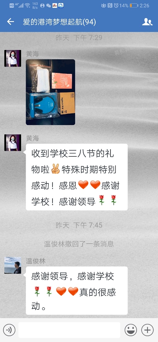 當下這個時代,讓我們感動的不是禮物本身,而是一份用心和惦念。特別感謝學校的這份用心,這份溫暖,我們收下了。