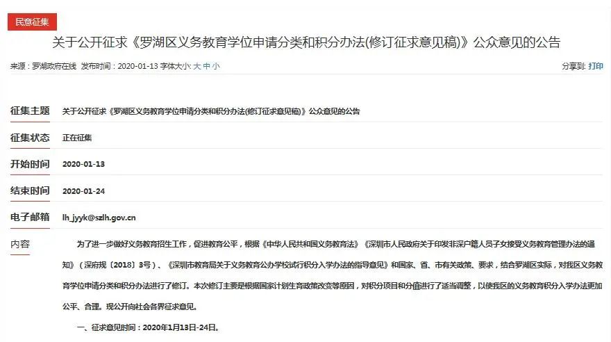 羅湖區在1月13日發布了《羅湖區義務教育學位申請分類和積分辦法(修訂征求意見稿)》向市民征求意見。