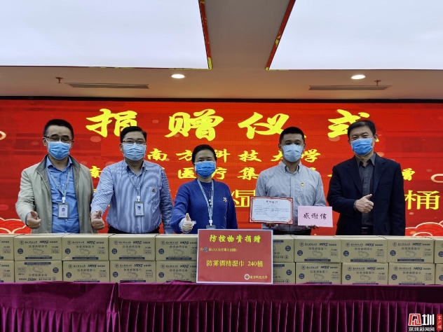 南方科技大學向南山區(qū)醫(yī)療集團總部 捐贈240桶自主研發(fā)的防霧酒精濕巾
