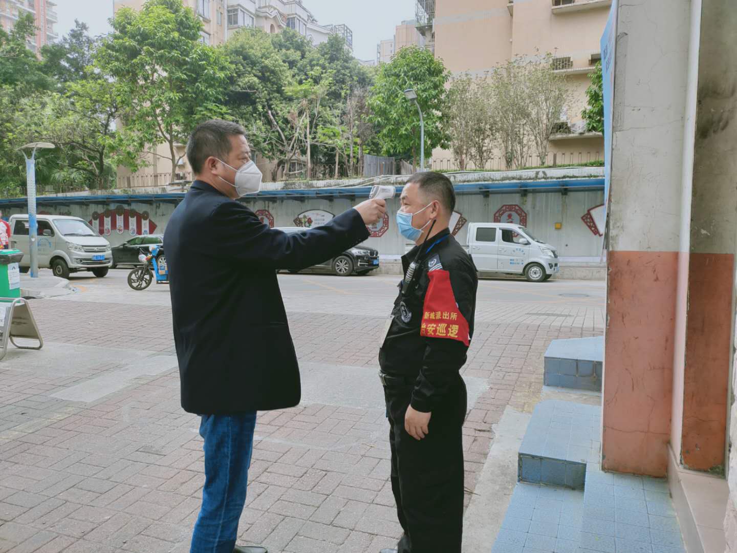 曾志軍為小區工作人員測量體溫