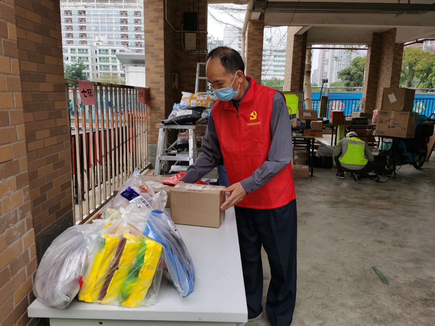 曾志軍、黃益芳整理小區快遞集中堆放點