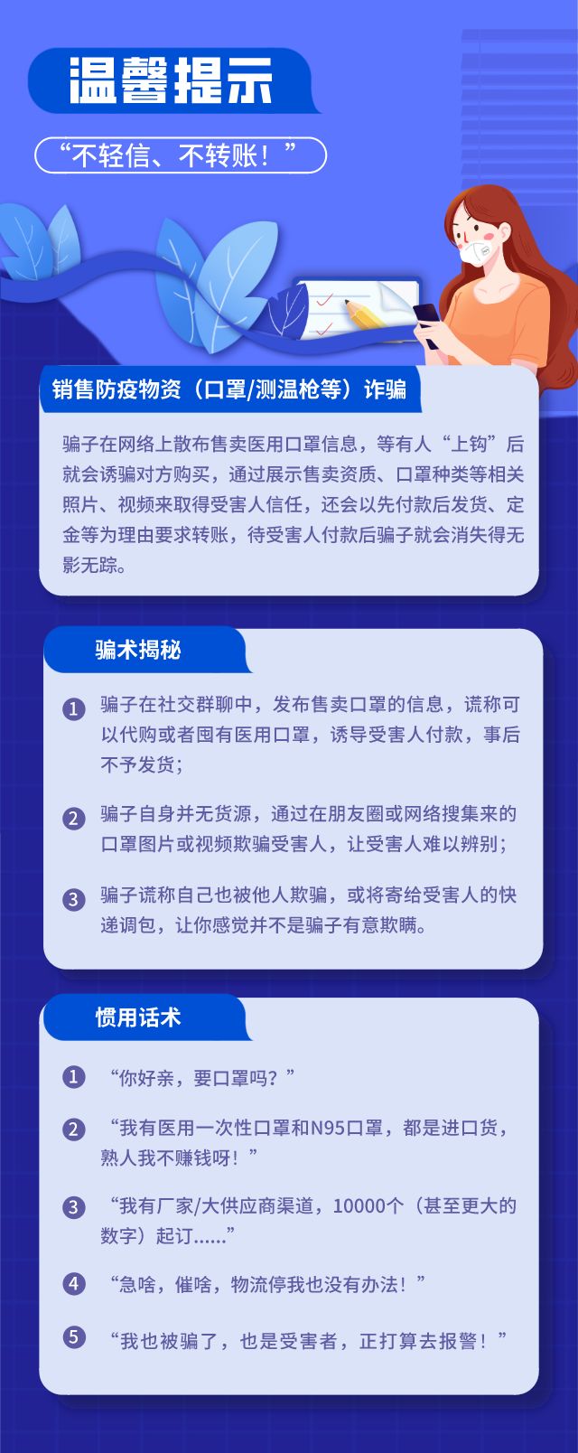 “我來報警!群里有人騙我口罩錢!” 3月4日,事主李小姐匆匆來到深圳市公安局福田分局香蜜湖派出所報案并講述了自己被騙的經過。 此前李小姐在某社區賣菜群里,看到了一名群友發布“口罩資源”的信息,于是加其為好友,對方向李小姐展示了售賣資質以及售賣口罩的樣品,一步步讓李小姐放松了警惕,雙方以1.75元/個醫用口罩、9元/個N94口罩的價格談妥交易。 隨后李小姐通過轉賬先向對方購買了一批口罩。李小姐覺得對方還挺靠譜的,就又分四次向對方轉賬,分別郵寄給自己不同的朋友,累計向對方轉賬了990元。 不料所有的錢轉過去之后,這個群友卻消失了,發信息不回,打視頻不接,雖未拉黑但也沒任何回應。“十分氣人,被騙的錢雖然不多,但是一定要給詐騙分子嚴懲!”李小姐對民警這樣講述道。 民生小案無小事,數百元現金被騙,電單車被盜……這些看似平常的一件件“小”案,背后牽連的卻是廣大群眾的幸福感、安全感。 香蜜湖派出所民警聚力破小案,服務大民生,做到有案必偵,快偵快破。經多方面調查后,最終確定了嫌疑人的身份——游某。3月9日11時許,福田警方將嫌疑人游某抓獲。 ▲嫌疑人通過網絡發布虛假信息進行詐騙 據了解,游某于2019年下半年來到深圳,此前加入了一個社區賣菜群。不久前,游某因手頭緊,于是就在群里發布消息,謊稱自己有大量口罩待出售。 游某在群里發布買賣“口罩”信息,會不會還有其他的受害者?這是民警第一時間的直覺。隨著調查的深入,民警發現還有其他受害者與游某聯系購買“口罩”及多筆手機轉賬記錄,金額雖然不大,大多為80元、100元、115元、175元……各個個案的涉案金額看起來都是“小錢”,但我們的民警還是盡心盡力,絲毫沒有放松,一項項認真核實并一一做好記錄。 據初步統計,從1月30日至今,游某通過向他人售賣口罩實施詐騙,累計詐騙4000余元,被騙的受害人多達16人! ▲民警抓獲嫌疑人 現游某對利用網絡實施口罩詐騙的行為供認不諱,已被警方依法刑事拘留,在香蜜湖派出所民警的聯系下,目前已有受害群友相繼前來協助調查,案件仍在進一步調查中。 ▲民警審訊嫌疑人 警言警語 香蜜湖派出所 民警鄭卓 疫情期間,不少企業和個人紛紛采購口罩等防護用品。針對利用口罩等防疫物資實施詐騙等違法犯罪行為的不法分子,福田警方堅決從嚴從快依法打擊。廣大市民謹記,購買口罩、消毒液等防疫物資,要通過正規途徑,做到“不輕信、不轉賬”,避免上當受騙。