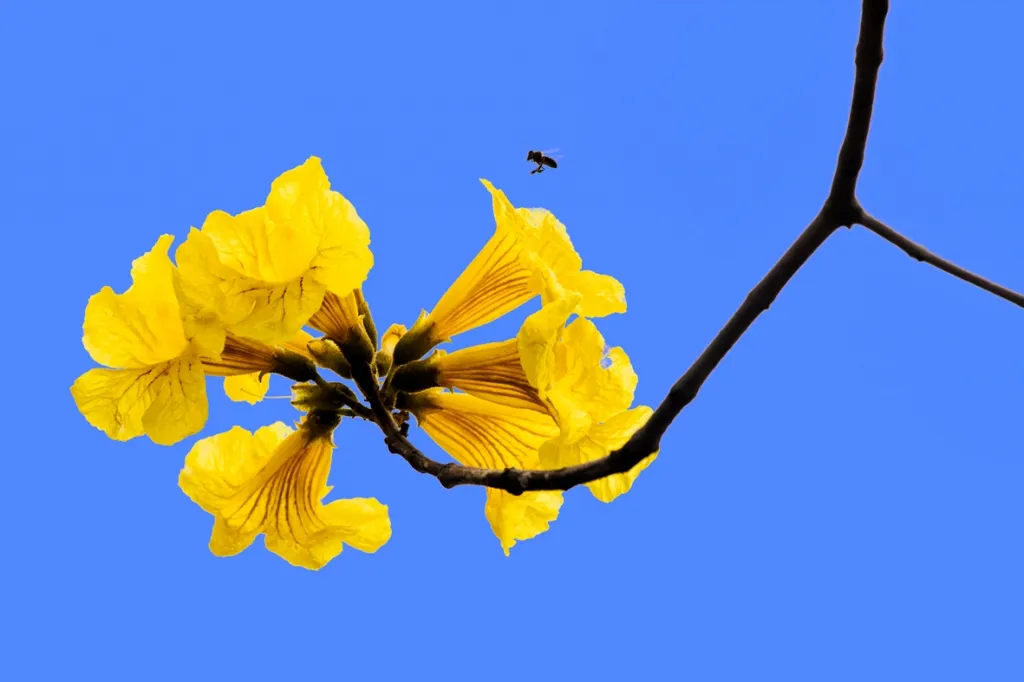 黃花風鈴木迎著和煦的春風驚艷綻放,