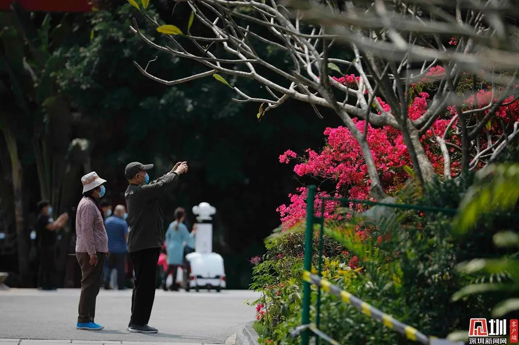 市民們紛紛拿起手上的長槍短炮,以深圳藍為背景,記錄下春日美景。