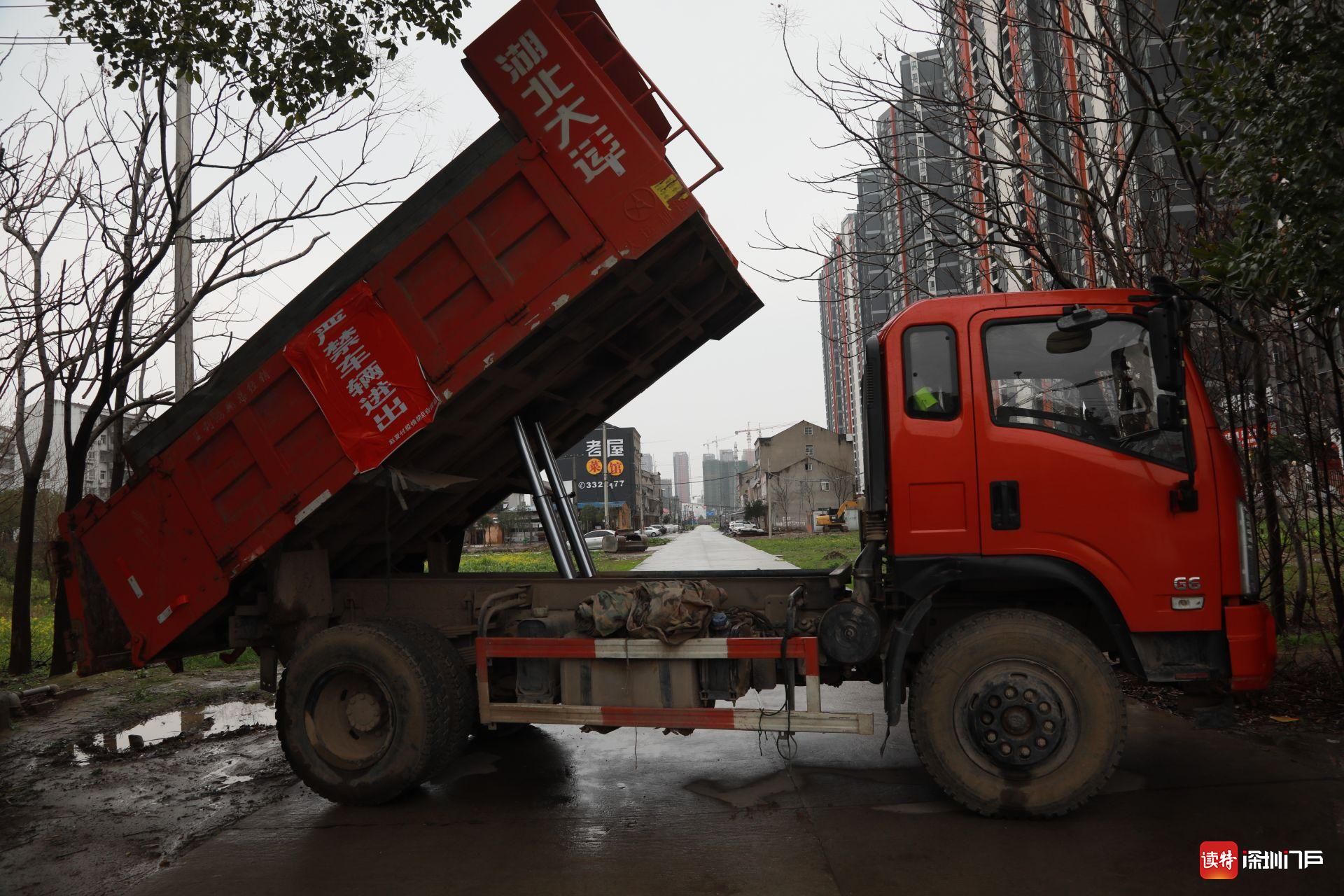 3月7日,監利,在街頭執勤卡點吃飯的社區工作人員。