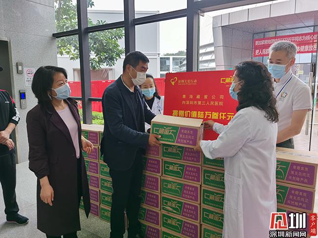 為了向這些最美的逆行者致敬,市關愛辦攜手愛心企業(yè)青海藏蜜公司與深圳市康輝旅行社,看望慰問一線的醫(yī)務工作人員。青海藏蜜公司向一線醫(yī)護人員捐贈1500盒青藏高原野花蜜,總價值6.3萬元。深圳藏蜜營銷管理有限公司總經理王大鳴動情地說,抗擊疫情是一場沒有硝煙的戰(zhàn)役,牽系著所有人的心,因為醫(yī)護人員的日夜守護與付出,大家才能安心復工,照常生活。希望醫(yī)護人員能在勞累之余,泡上一杯蜂蜜水,增強抵抗力,緩解心里壓力,更好地續(xù)航戰(zhàn)斗。
