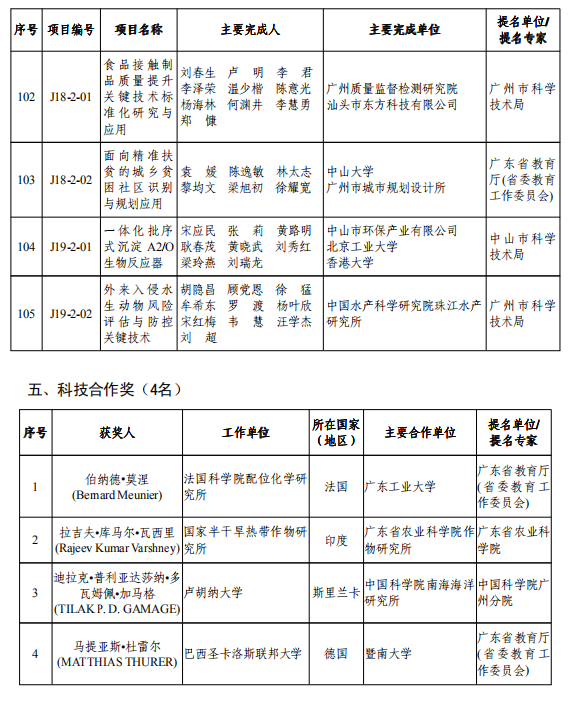 此外,授予伯納德·莫涅、拉吉夫·庫馬爾·瓦西里、迪拉克·普利亞達莎納·多瓦姆佩·加馬格、馬提亞斯·杜雷爾4名專家科技合作獎。
