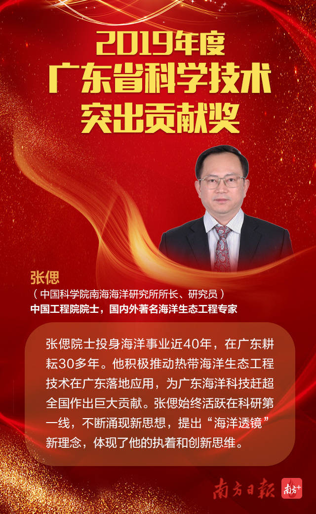 其中,2019年度廣東省科學技術突出貢獻獎的獲獎者分別為:中國工程院院士、亞太材料科學院院士、華南理工大學教授王迎軍;中國工程院院士,國內外著名海洋生態工程專家,中科院南海海洋研究所所長、研究員張偲。