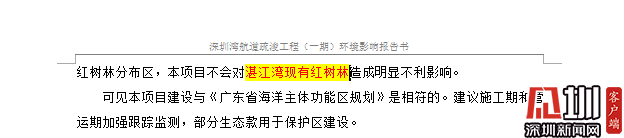 記者在《環(huán)評(píng)報(bào)告》中看到,有關(guān)表述存在錯(cuò)誤屬實(shí),在對(duì)深圳灣航道疏浚工程(一期)項(xiàng)目可實(shí)現(xiàn)的目標(biāo)的闡述中,將“深圳市的目標(biāo)”闡述為“湛江市的目標(biāo)”;將“深圳灣紅樹(shù)林”表述成“湛江灣紅樹(shù)林”;將“深圳市國(guó)民經(jīng)濟(jì)”表述成“湛江市國(guó)民經(jīng)濟(jì)”;將“深圳海事局”表述成“湛江海事局”等。