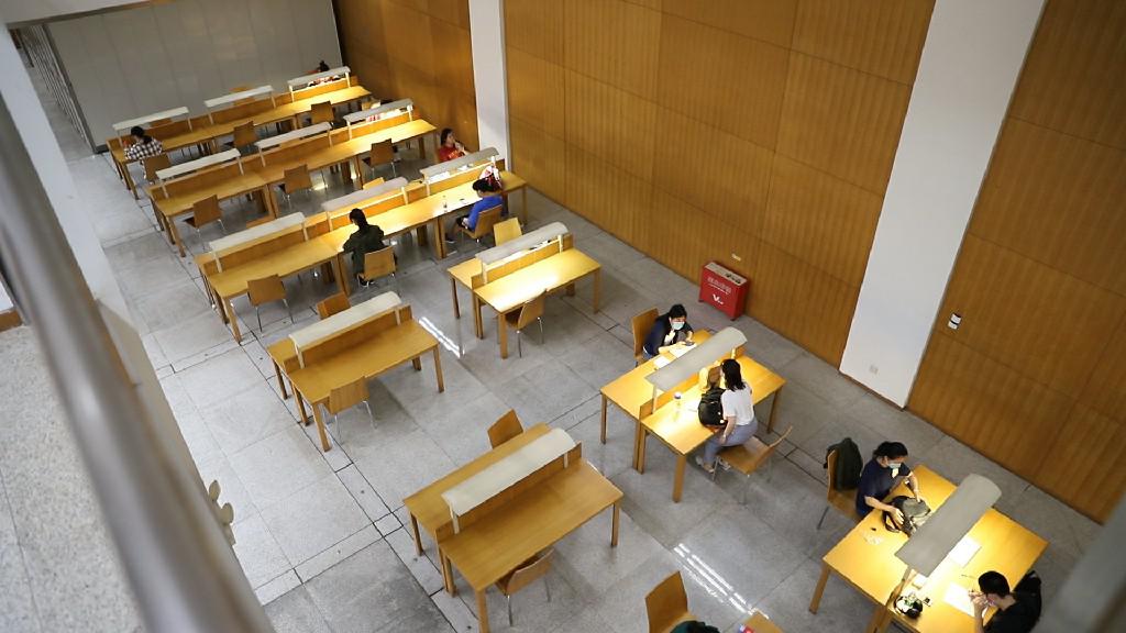 上午10時,深圳圖書館準時開館,讀者們經過體溫檢測、預約信息核查、洗手消毒等程序后陸續有序進館。閱覽區域內,讀者有序地錯位就坐。"不用經歷‘搶位大戰’就能落座閱讀,還真有些不習慣。"來自羅湖的深圳大學生張紫煜感嘆道。在閱讀完一本雜志后,張紫煜將雜志放入了大廳的自助圖書殺菌機中進行消毒。