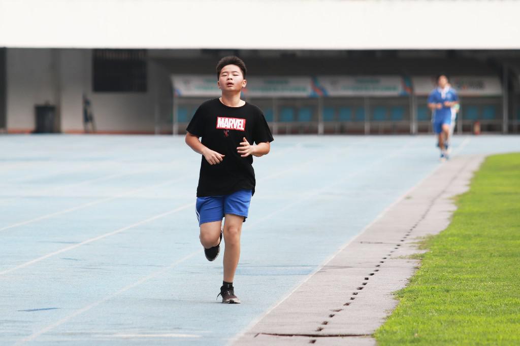 周六上午,在市體育中心體育場田徑場鍛煉的,大部分是即將參與體育中考的學生。李黨利與妻子一大早就帶著女兒來到田徑場。他說:"疫情發生后女兒基本上待在家里,前一陣子帶她到公園里跑一下,現在終于可以在體育場繼續訓練了。"在女兒練習跑步時,李黨利也陪著沖刺,練得滿頭大汗。他說:"戴著口罩跑不太適應,等疫情結束了會跑得更盡興。"