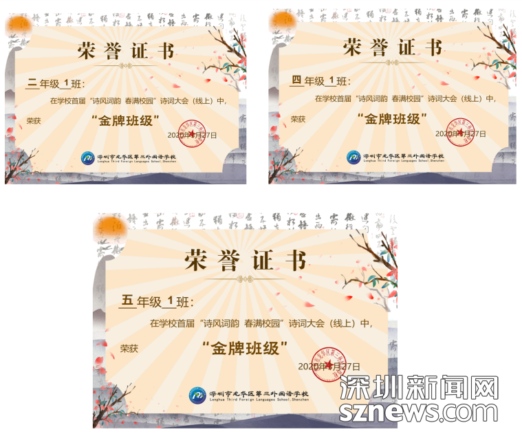 龍華區第三外國語學校舉行首屆“線上詩詞大會”