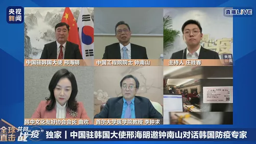 4月10日15時(shí),中國(guó)駐韓國(guó)大使邢海明邀請(qǐng)鐘南山院士與韓國(guó)防疫專家李鐘求教授在線交流。鐘南山專門制作了一個(gè)題為“抗擊新冠肺炎的中國(guó)經(jīng)驗(yàn)”的PPT,向韓國(guó)朋友介紹中國(guó)經(jīng)驗(yàn)。
