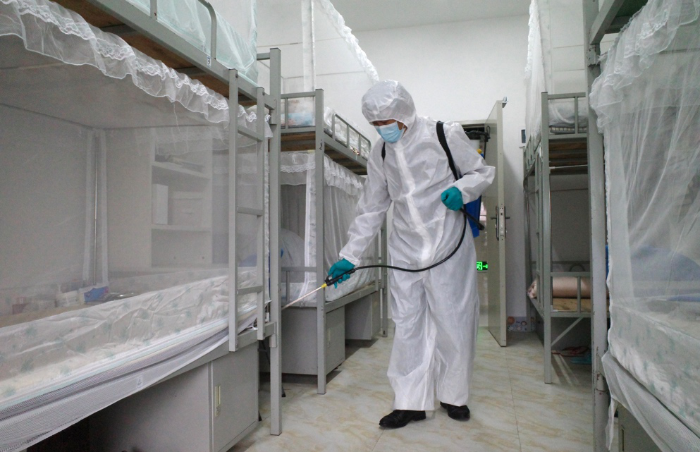 與此同時,為保障住宿生安全,翠園中學已對所有辦公室、教室和學生寢室、電梯進行了全方位消殺,并在校園安裝150多個水龍頭,配備洗手液。在每棟樓設置了消毒卡片,每層樓增設口罩回收箱,每間教室安裝紫外線燈,每天定時進行消殺工作。此外,學校還在每間寢室洗手間都配備了洗手液,張貼了“七步洗手法”標識。食堂間隔1米擺放單人單座,并在地面貼上“排隊取餐、間隔1米”的腳印貼紙,取餐處貼有“請自覺保持距離”“請勿面對面就餐”等標識。