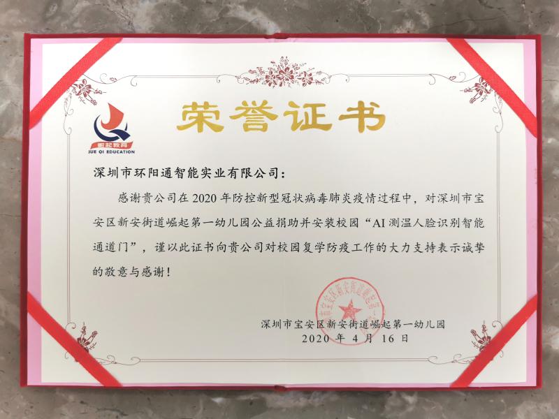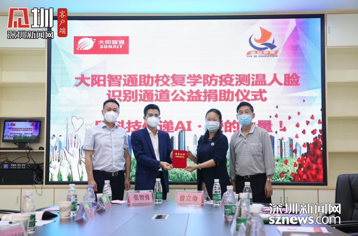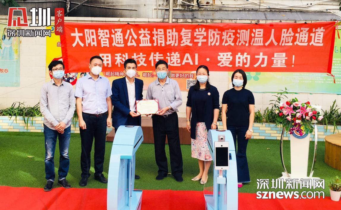 4月16日下午,深圳市環陽通智能實業有限公司(以下簡稱“大陽智通集團” )向崛起教育集團的深圳市寶安區崛起誠信實驗學校和深圳市寶安區崛起第一幼兒園捐贈多套防疫測溫人臉識別通道,并舉辦公益捐助活動,助力學校全面復學。