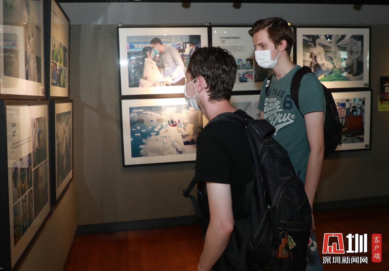 在現場前來觀展的人群中,記者還注意到幾位外籍友人。在采訪中,從英國遠道而來,在深圳生活了六個月左右的他們,還主動向記者指出了部分獲獎攝影作品中的深圳平安大廈、歡樂海岸等他們平時較為熟悉的標志性建筑。而在被問到現場印象最深的作品時,他們又細細把展廳看了一遍,最后站定在這張帶著浪漫人文氣息的作品《送別》前。聽罷記者介紹攝影師在作品中所表達出的“隔離病毒,但隔離不了愛”之后,他們紛紛捂了捂心口表示:“太甜蜜了,這是特殊時期普通人之間平凡自然的愛和浪漫。”