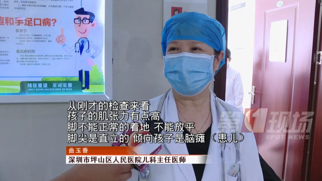 做完檢查后,醫生表示,孩子的肌張力有點高。