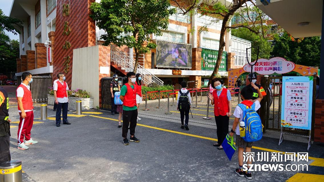 見圳客戶端·深圳新聞網(wǎng)5月12日訊 (記者 曹園芳 通訊員 徐杰 呂萍 李佳英 )5月11日早晨7:00,陽光小學(xué)校長高鵬、健康副校長簡聰主任、校醫(yī)羅醫(yī)生、值日教師、黨員先鋒崗教師等已提前到校并做好各項(xiàng)準(zhǔn)備工作,7:20校門開啟,孩子們相隔一米排隊(duì)等候,在完成了人臉識(shí)別校對(duì)信息、熱成像儀實(shí)時(shí)測溫、自動(dòng)洗手消毒清潔后進(jìn)入校園,整個(gè)過程井然有序、快速高效。他們燦爛的笑容、禮貌的問候,讓沉寂已久的陽光校園再次煥發(fā)活力與生機(jī)。