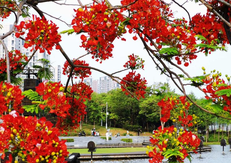 見圳客戶端·深圳新聞網2020年5月15日訊(深圳特區報記者 邱海彬 文/圖)又是一年鳳凰花開時,五月的鵬城沉浸在鳳凰木火紅的海洋之中,道路旁、公園內、小區里的鳳凰花盛開著美麗的花朵,為城市增添了不少靚麗色彩,紅紅火火的鳳凰花成了夏日熱情的引領者。